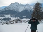 Scuol – waiting for the bus back after skiing down to Sent on the dream slope.
