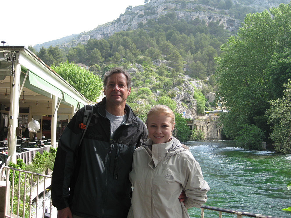 On the way back to Fontaine de Vaucluse it began raining hard again. We got drenched, oh well. We stopped at a cafe Fontaine de Vaucluse to have lunch and dry out. Then it was back to L’Isle sur la Sorgue to return the bikes.